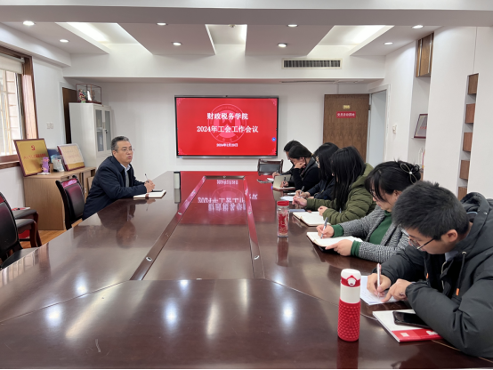 2024年工会工作会议在办公楼708会议室召开,会议由财税学院党委副书记、工会主席张代宝主持,工会委员汪崇金、马静、郭滨滨、曹雪姣、张新颜等参加。