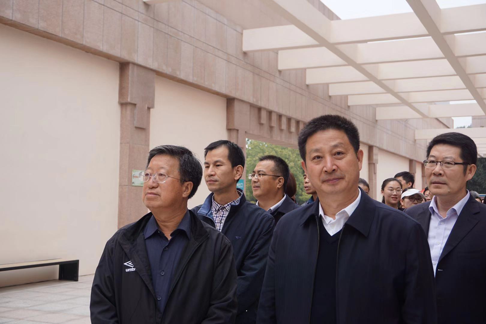 全体教职工党员和部分学生党员骨干等候入馆参观)