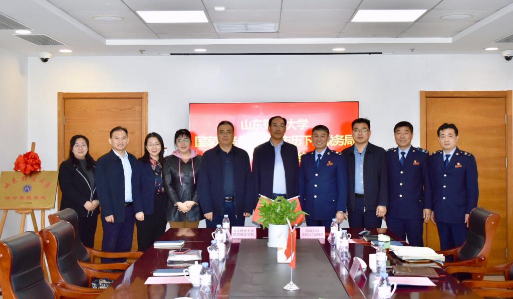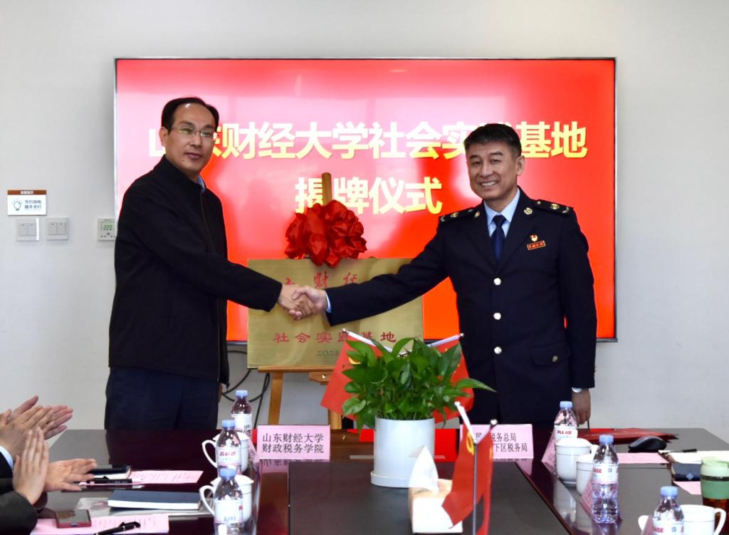 社会实践基地揭牌仪式在历下区政务服务中心举行。财政税务学院党委书记刘波,校团委副书记谷学峰,学院党委副书记张代宝、滕晖,副院长郭健、赵宝廷,税收系主任马静等参加,国家税务总局济南市历下区税务局局长臧军,副局长刘利群、刘耀林等出席。刘利群主持了签约仪式。