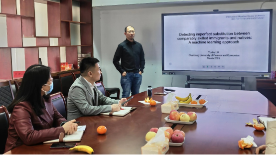 2023年第1期闻道学术论坛在舜耕校区办公楼816举行。本期论坛由青年博士卢云鹤做了题为《Detecting Imperfect Substitution between Comparably Skilled Immigrants and Natives: A Machine Learning Approach》的学术报告,研讨会由青年博士胡春龙主持,樱桃影视