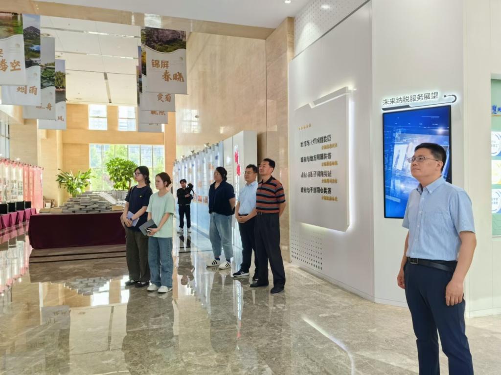 师生团队一行参观了济南市高新区税务服务大厅,在工作人员的陪同下参观了办税服务大厅的前台、中台和征纳互动服务运营中心等。工作人员详细介绍了内部税务征管岗位(部门)之间协作情况、纳税服务模式、“码”上办税以及自助终端服务流程,演示了纳税咨询服务、纳税人权益保护、税费争议调解等业务的具体操作流程。随后,参观了济南市税务局税务综合展厅。济南市税务局纳税服务和宣传中心主任高洪生介绍了税务工作精神、智慧税务、纳税服务和近年来开展税务稽查的情况等。