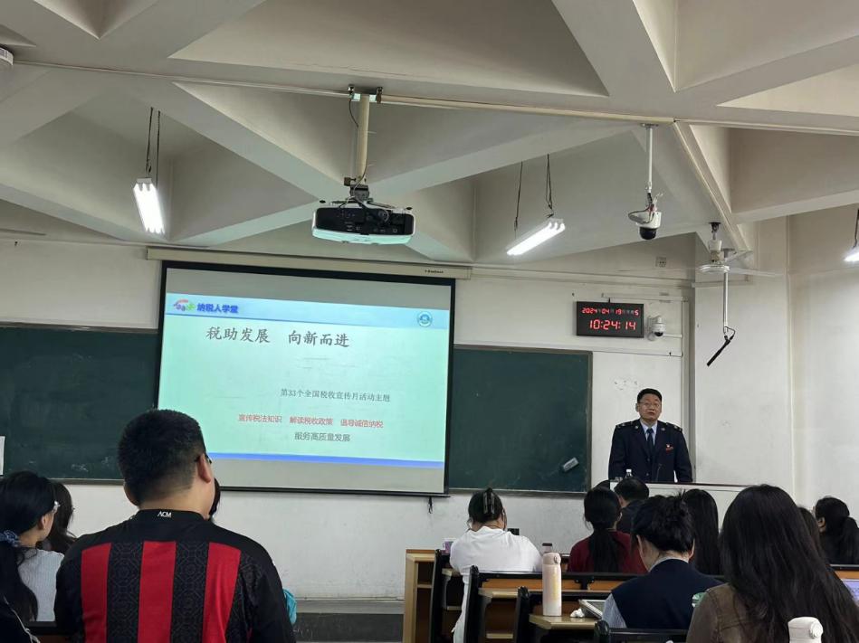 4月19日上午“税务实务前沿讲座”2024年第3期在舜耕校区6号教学楼顺利举办。国家税务总局济南市天桥区税务局吴茵惠主任结合第33个税收宣传月主题“税助发展,向新而行”,围绕着税收征管实务作了报告。副院长赵宝廷主持讲座,税收系主任马静、部分青年教师及2023级全体税务硕士研究生参加。